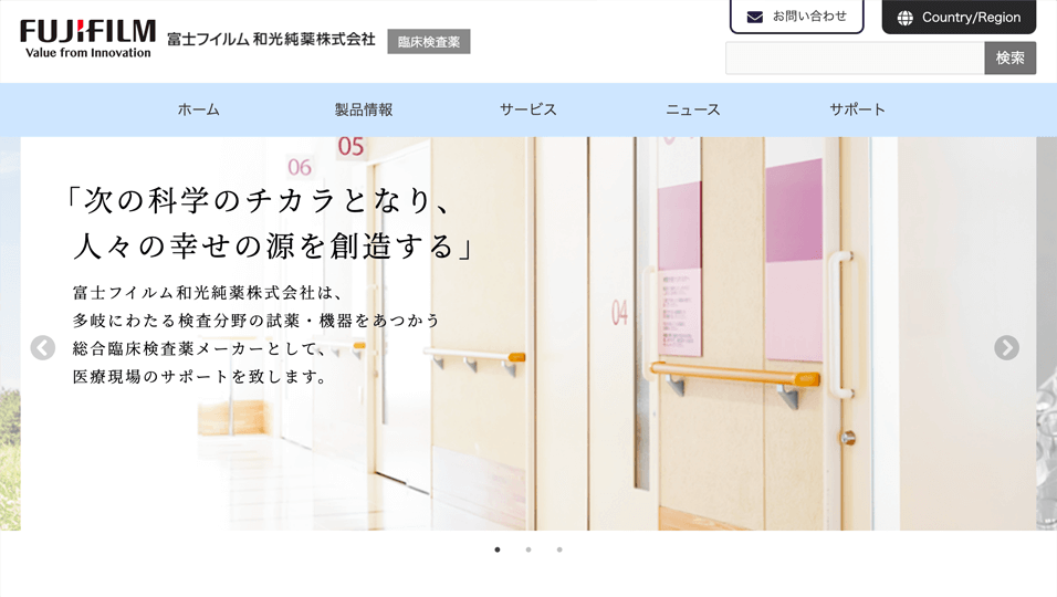 富士フイルム和光純薬株式会社の臨床検査薬サイトのフルリニューアルのデザインとコーディングを受注・制作しました。