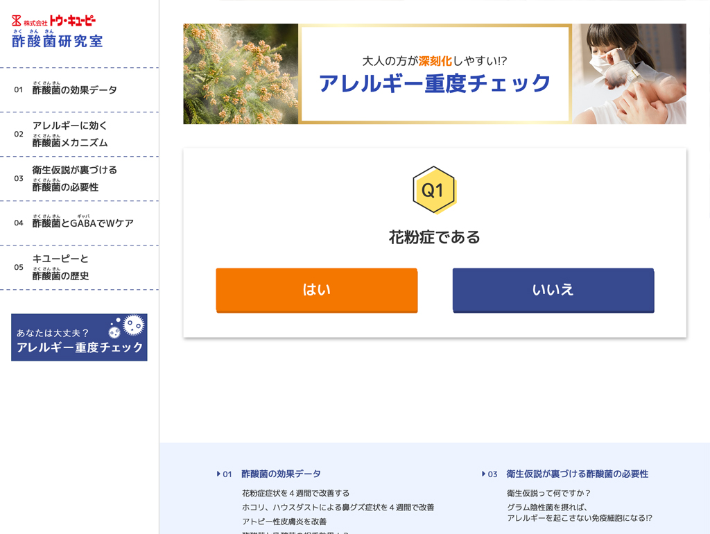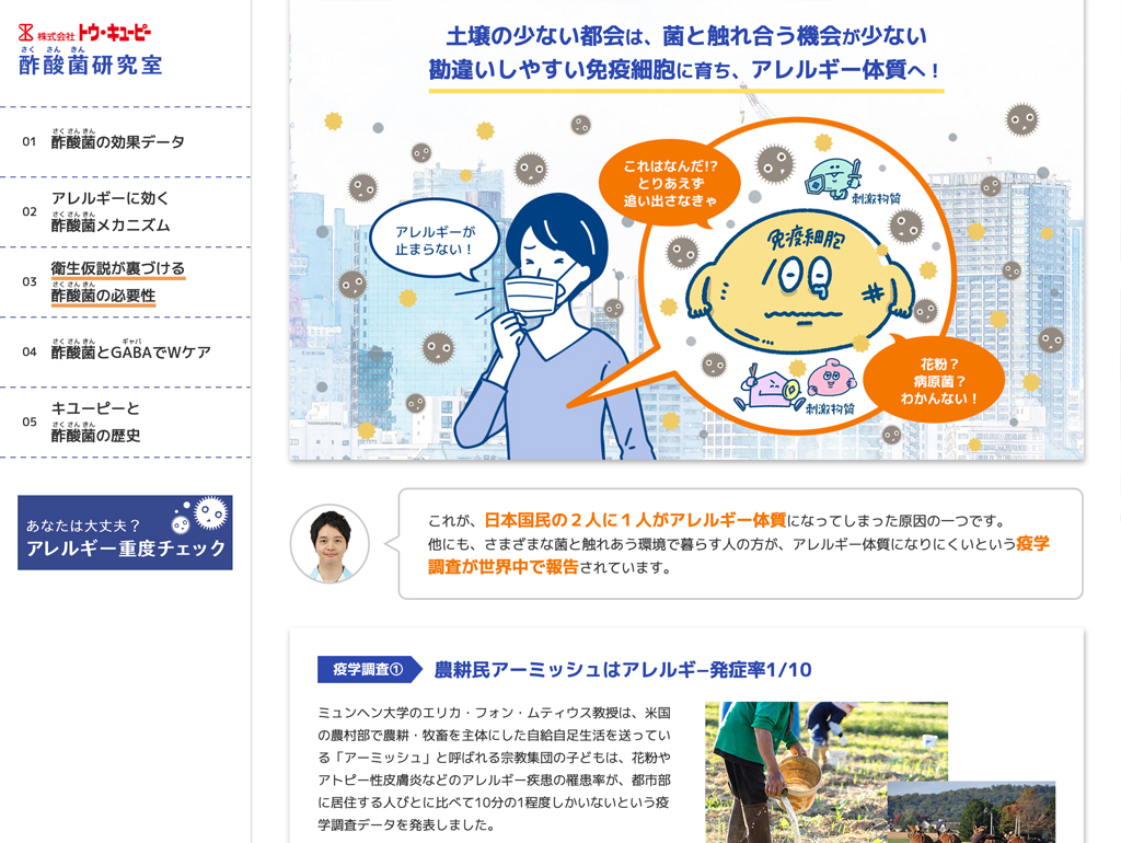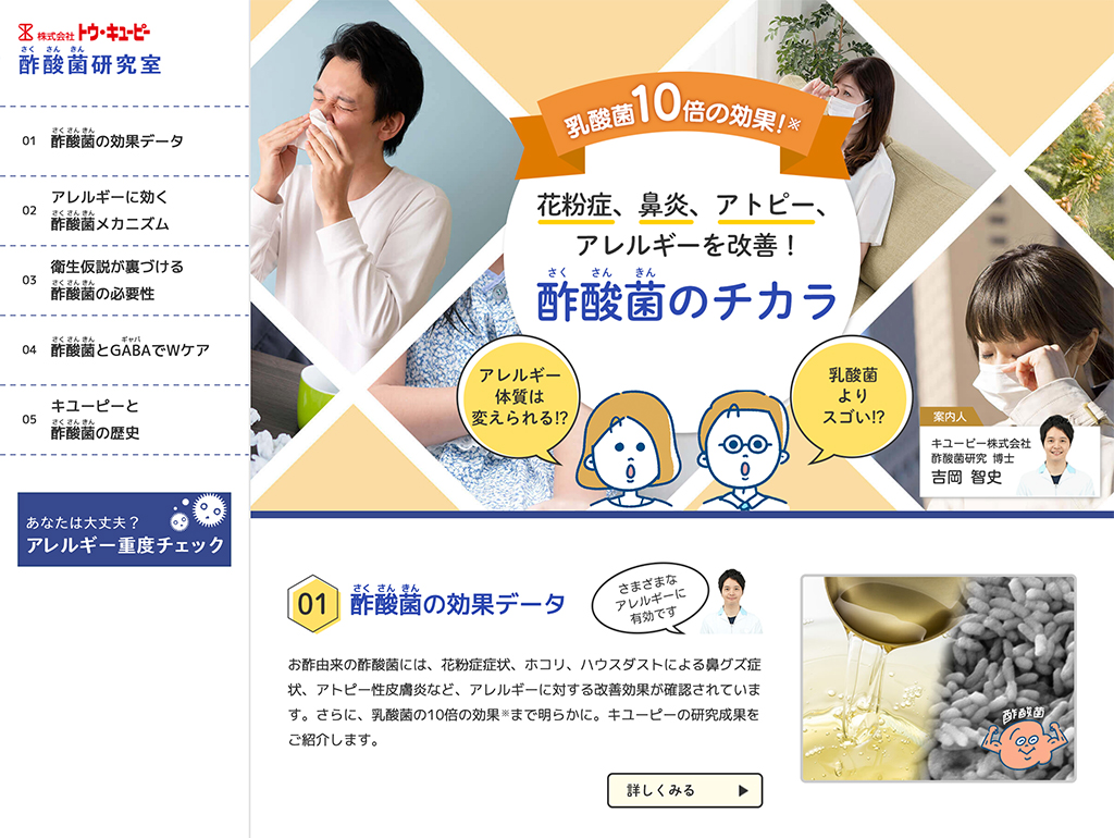株式会社トウ・キューピー様の酢酸菌訴求用サイトのデザインとコーディングを担当しました。