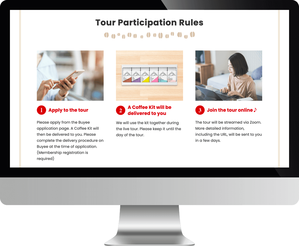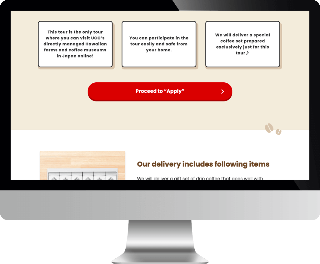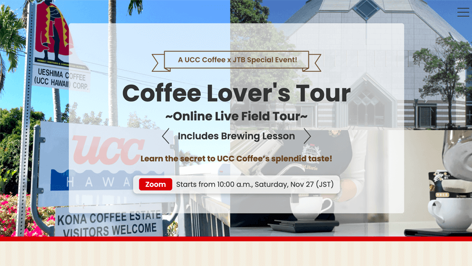 アフターコロナのインバウンド需要の早期囲い込みのため、「ハワイ直営農園×六甲工場×コーヒー博物館×アカデミー」をめぐるオンラインツアー~Coffe Lover's Tour~のLPデザインとコーディングを担当しました。